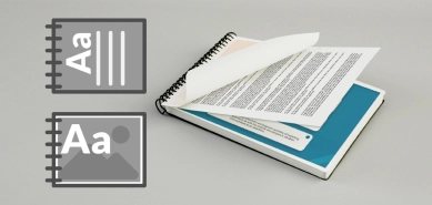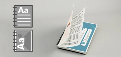 Különböző súlyú és felületű, kiváló minőségű, FSC- és Ecolabel-tanúsítvánnyal rendelkező papírokkal dolgozunk.